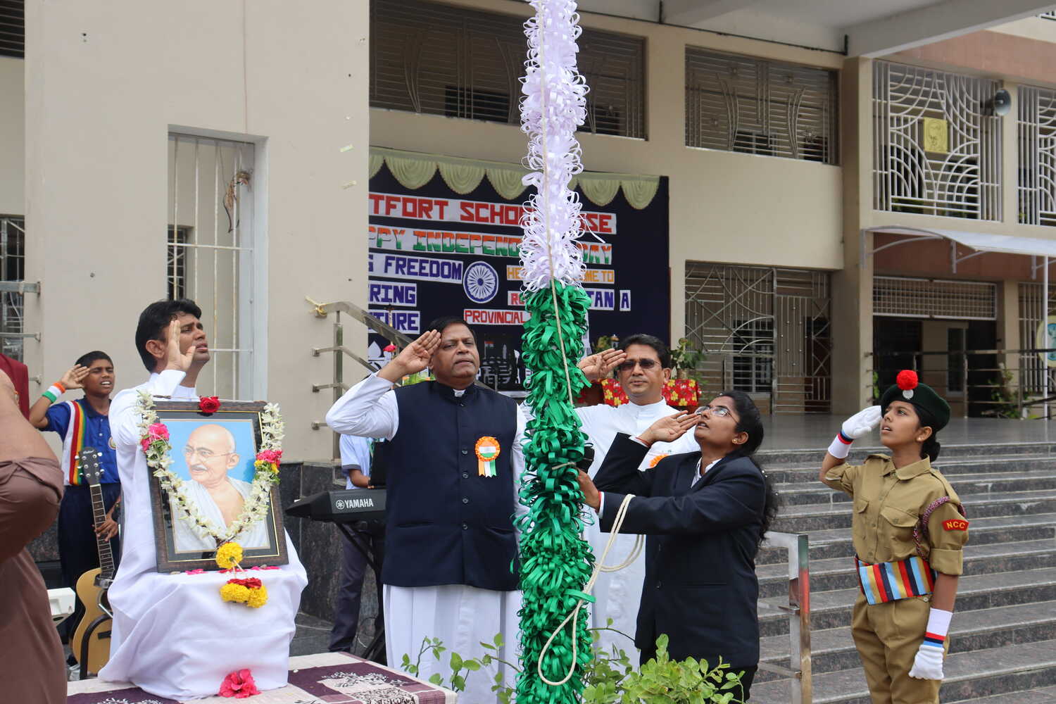 The day begins with the hoisting of the national flag, followed by the national anthem. Students and staff come together to pay tribute to the leaders and countless others who fought for our independence. Speeches, patriotic songs, and cultural programmes highlight the significance of freedom and our duties as citizens.